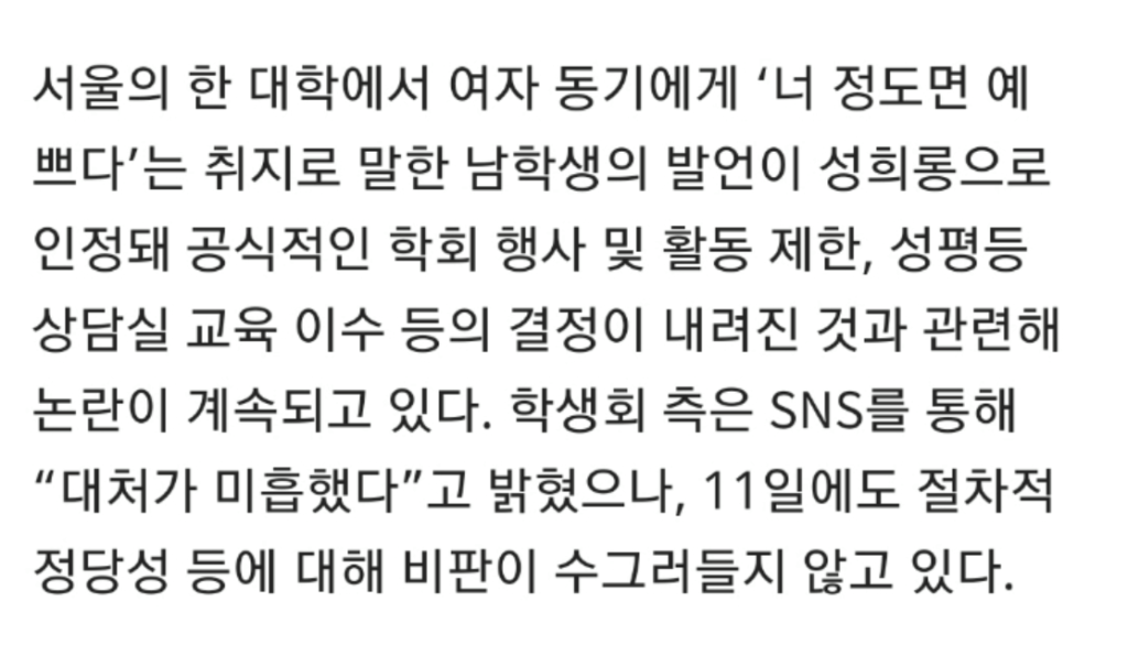 너 정도면 예쁘다는 발언 논란