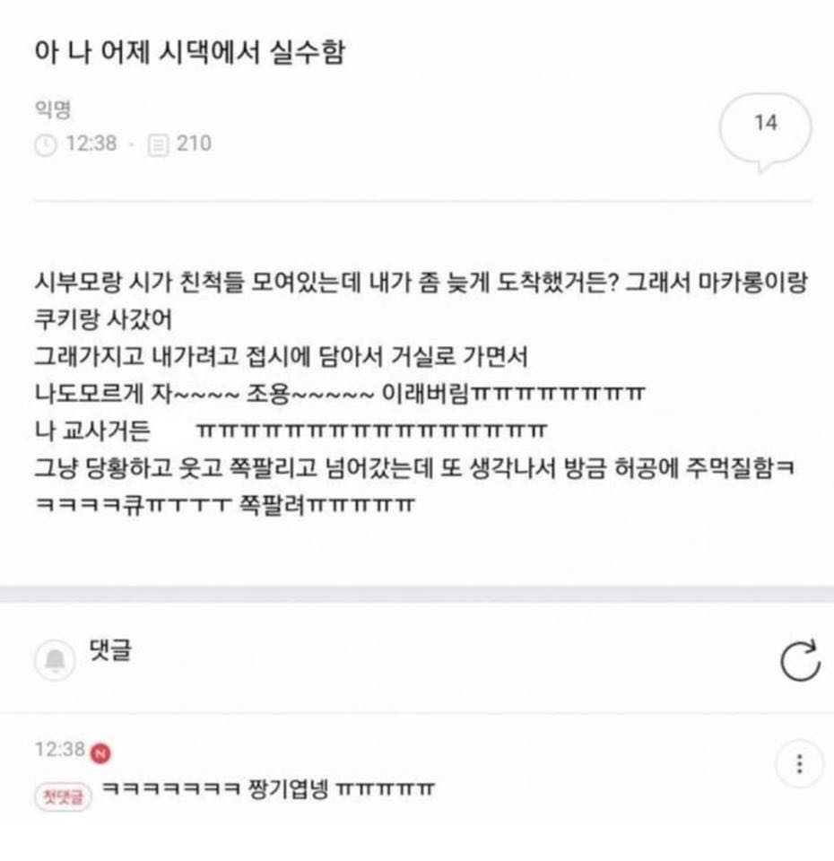 기화 이 무우무우 3 주, 1 일 전 활성 More Submissions 홈 프로필 글 댓글 좋아요 컬렉션 활동 친구 그룹 Upvotes Downvotes Viewing 3 votes - 619 through 621 (of 2,074 total) ← 1 … 206 207 208 … 692 → 네? 뭐라고요? submitted by 무우무우2022.03.10, 19:14 며느리의 실수ㅋㅋㅋㅋㅋㅋ submitted by 무우무우2022.03.10, 19:13 묘하게 설득이 되네..? 논리적이군.. 은 무슨.. 안경은 시력 상승되지만 모자 쓴다고 지식이 상승되는건 아니잔아 ㅂㅅ 맞는 말이네 쳐맞는 말. submitted by 무우무우2022.03.10, 19:08 Viewing 3 votes - 619 through 621 (of 2,074 total) ← 1 … 206 207 208 … 692 →